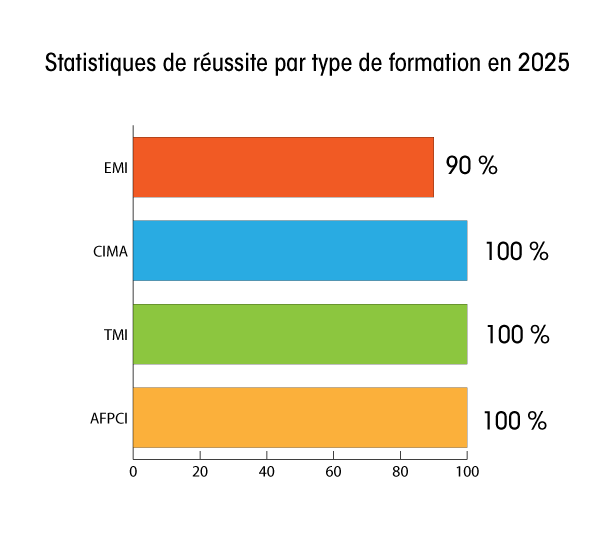 - CIMA : 100 % de réussite / 100% de taux de placement à l’issue de la formation